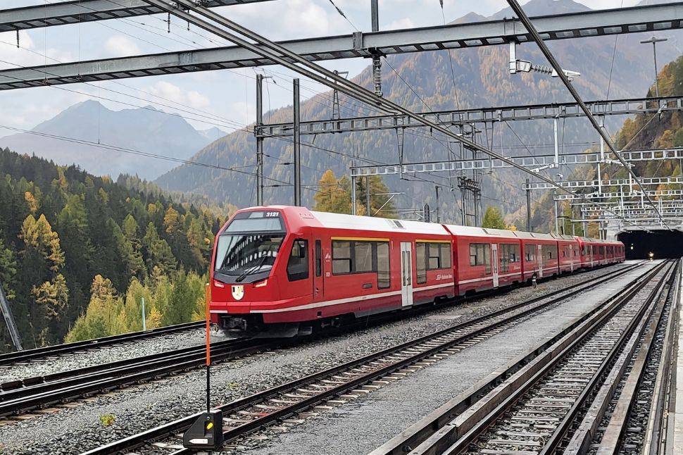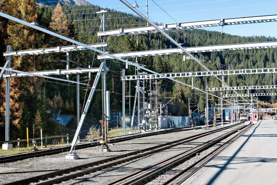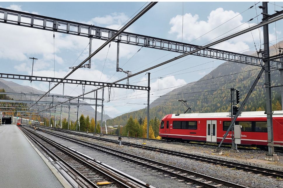 Deckenstromschiene im Vereinatunnel und in den Verladestationen der RhB